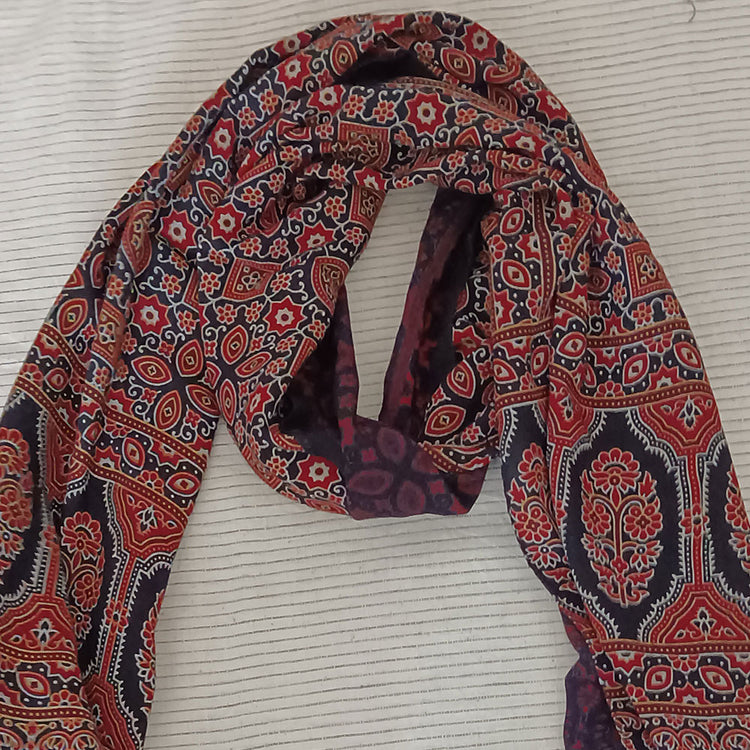 Ajrakh block print is a traditional Indian printmaking technique usedsince the 15th century. It is a method of woodblock printing on textiles, wherethe design is carved into a block of wood, which is then inked and pressed ontoa piece of fabric. Ajrakh block prints are characterized by their vibrantcolors and detailed patterns. Block prints are a specific type printmaking thathas been used in many different cultures across the globe. Ajrakh block printsoriginated in India and this style of printmaking is a very distinctive type oftextile print. Ajrakh block prints are traditionally made using natural dyesand these prints are used to decorate garments such as saris and shawls. Thedesigns of ajrakh block prints are very distinctive and these prints oftenfeature intricate patterns and shapes. The fabric originates from the AjrakhpurVillage of Gujarat. Artisans in the village are very skilled, and the printingdates back to around 400 years ago. The patterns are unique and beautiful.Ajrakh is a style of block printing that was originally used in the manufactureof fabrics but is now also used to make art and souvenirs. The process ofmaking ajrak fabric is unique, as the design is first carved onto a woodenblock, which is then stained and pressed. in order to transfer the design ontothe fabric. The carving of the ajrak design onto the wooden block is an art initself, with intricate patterns, stylized images, and delicate colors used.