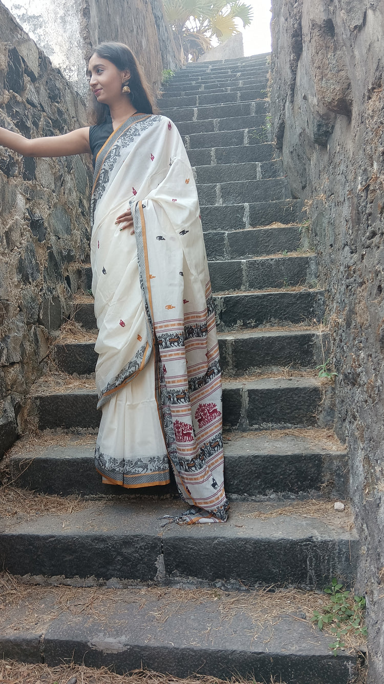 West bengal holds a special place in the heart of handloom lover. The handloom cotton saree from west bengal are particularly famous for their exceptional craftsmanship as well as the fine quality of muslin and cotton. The begampuri cluster, named after the eponymous begampur in the Hoogly district of west bengal, is well known for its bright and colorful combinations, intricate stipes and the serrated extra weft border designs.
