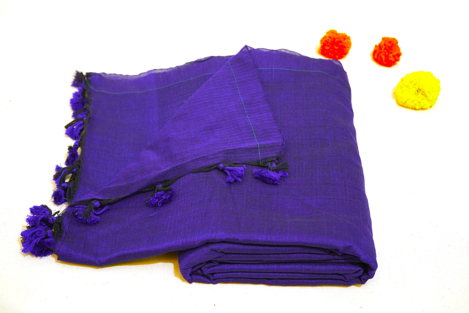 Begumpuri Soft Bengal Cotton Handloom Sari With Tassels