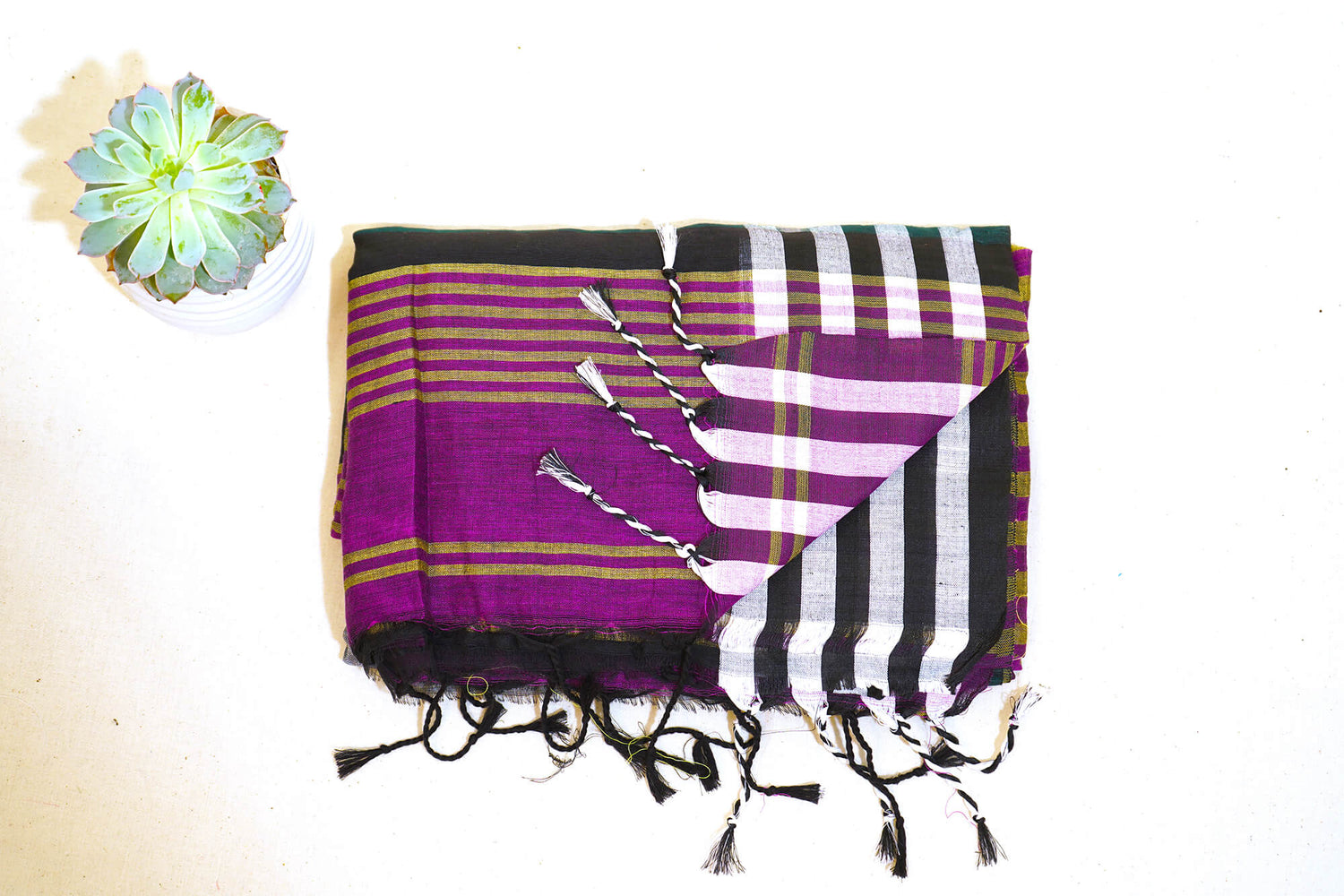 West bengal holds a special place in the heart of handloom lover. The handloom cotton saree from west bengal are particularly famous for their exceptional craftsmanship as well as the fine quality of muslin and cotton. The begampuri cluster, named after the eponymous begampur in the Hoogly district of west bengal, is well known for its bright and colorful combinations, intricate stipes and the serrated extra weft border designs.