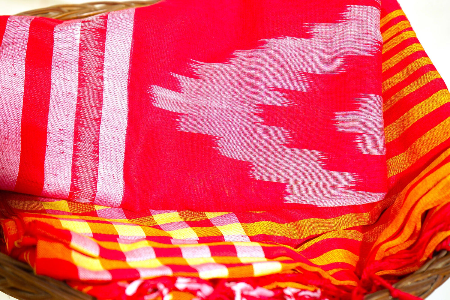West bengal holds a special place in the heart of handloom lover. The handloom cotton saree from west bengal are particularly famous for their exceptional craftsmanship as well as the fine quality of muslin and cotton. The begampuri cluster, named after the eponymous begampur in the Hoogly district of west bengal, is well known for its bright and colorful combinations, intricate stipes and the serrated extra weft border designs.