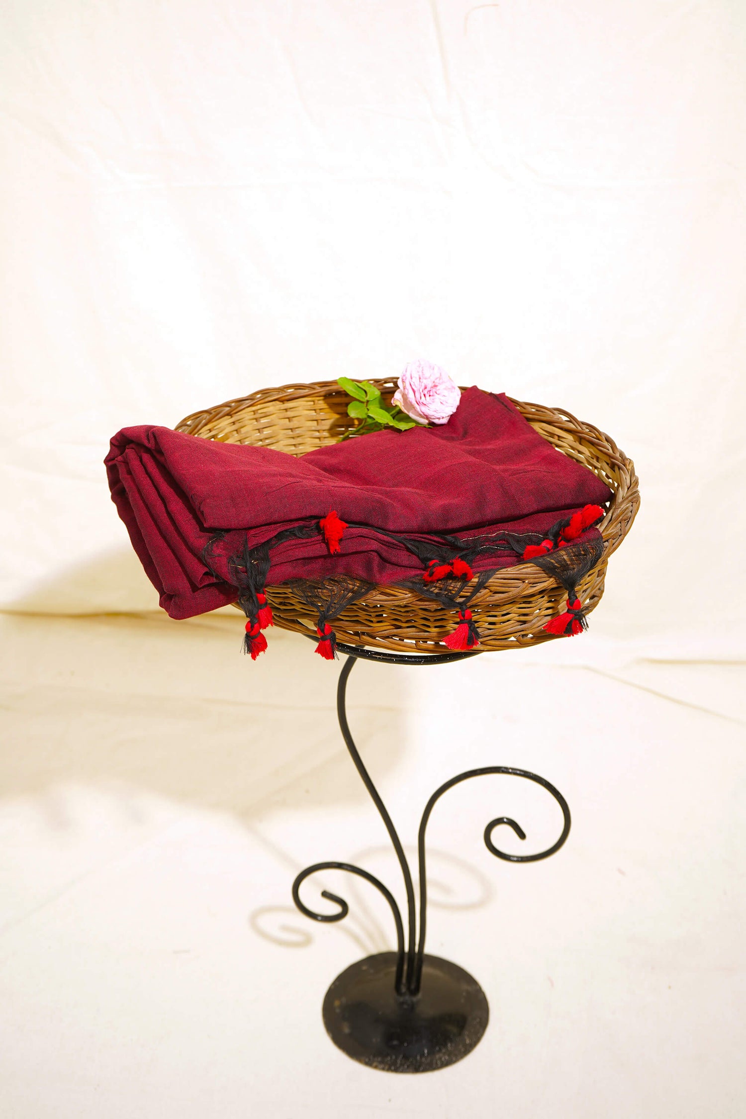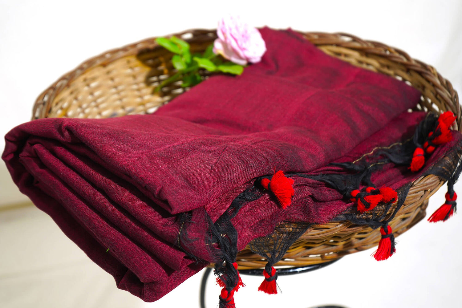 Begumpuri Soft Bengal Cotton Handloom Sari With Tassels