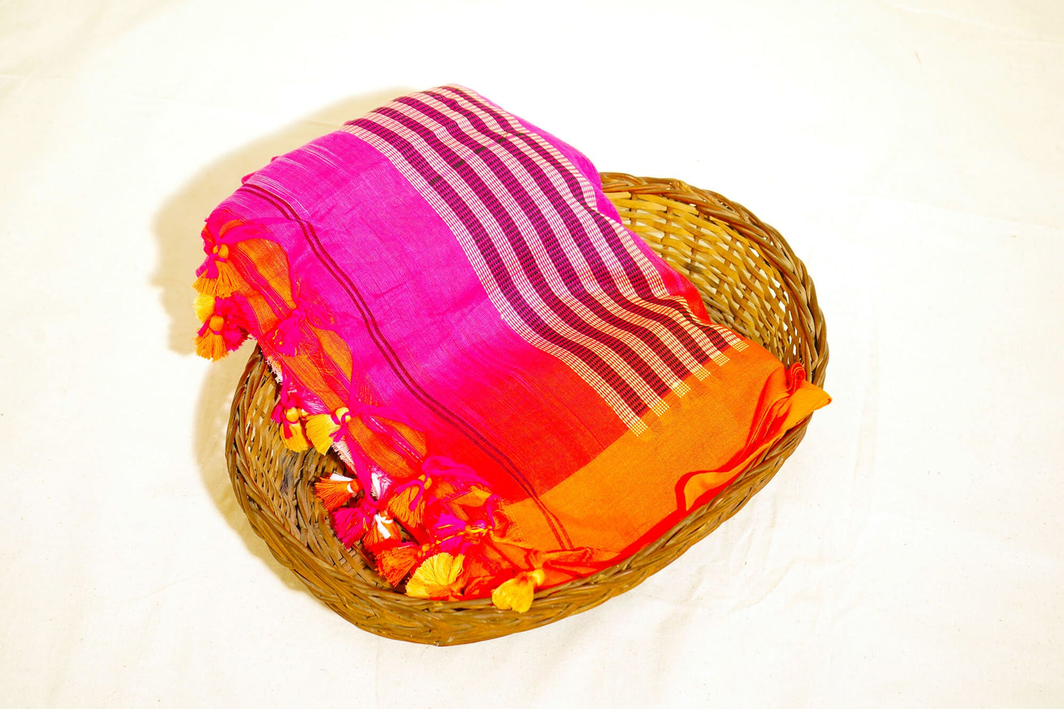 Begumpuri Soft Bengal Cotton Handloom Sari With Tassels