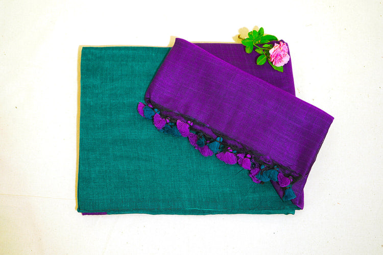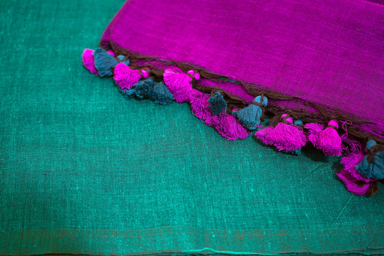 Begumpuri Soft Bengal Cotton Handloom Sari With Tassels