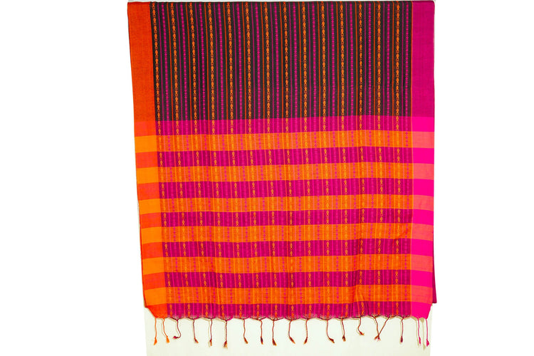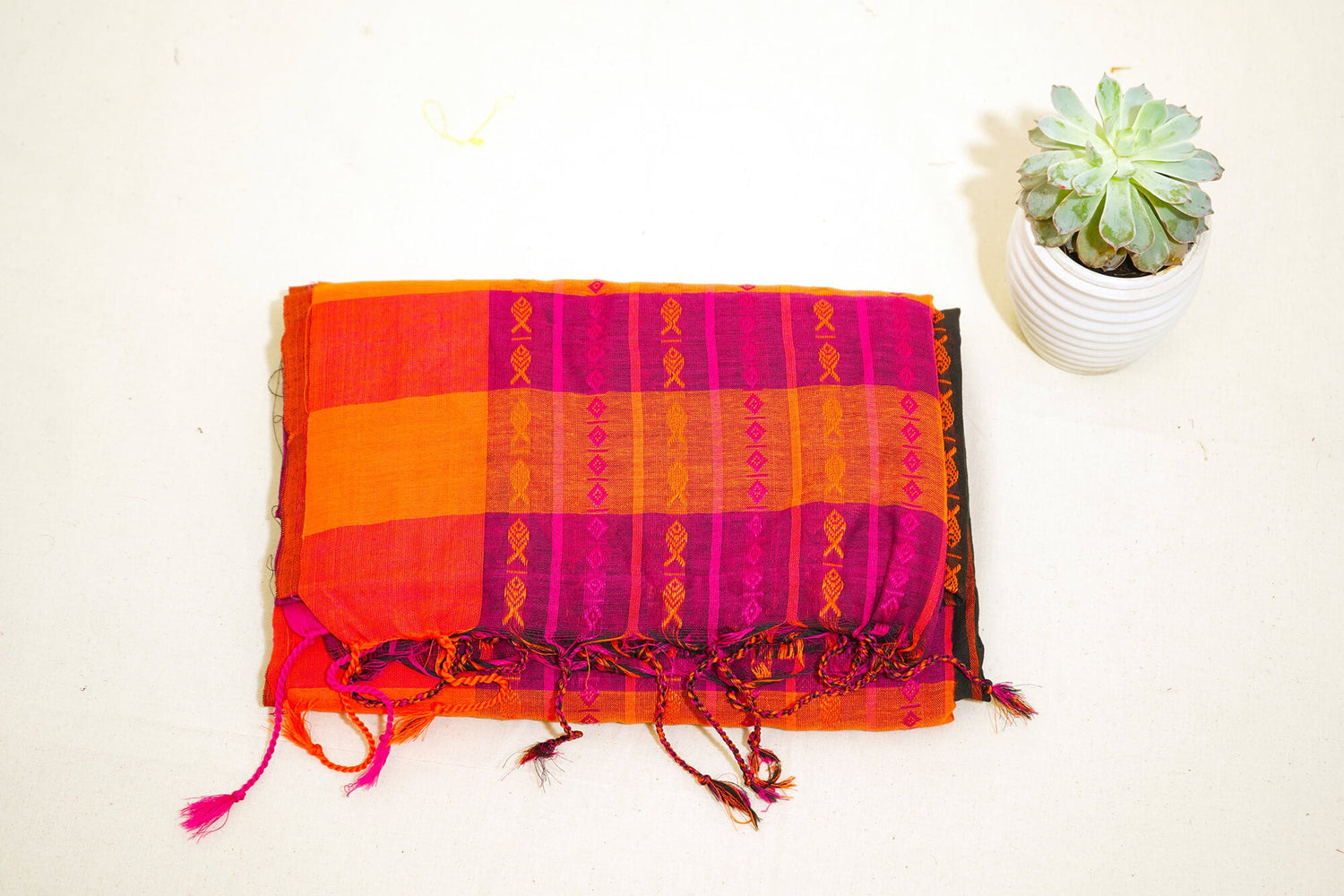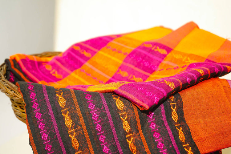 West bengal holds a special place in the heart of handloom lover. The handloom cotton saree from west bengal are particularly famous for their exceptional craftsmanship as well as the fine quality of muslin and cotton. The begampuri cluster, named after the eponymous begampur in the Hoogly district of west bengal, is well known for its bright and colorful combinations, intricate stipes and the serrated extra weft border designs.