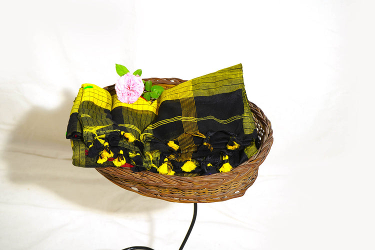 Begumpuri Soft Bengal Cotton Handloom Sari With Tassels