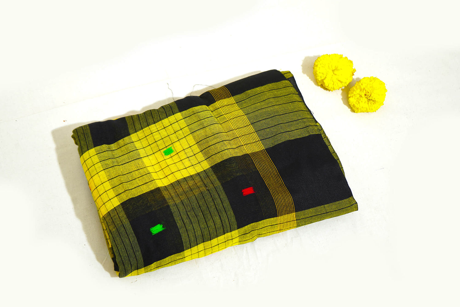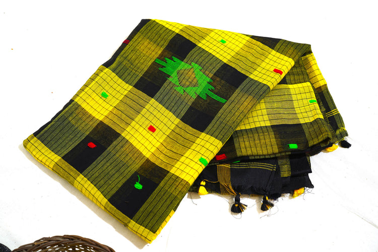 West bengal holds a special place in the heart of handloom lover. The handloom cotton saree from west bengal are particularly famous for their exceptional craftsmanship as well as the fine quality of muslin and cotton. The begampuri cluster, named after the eponymous begampur in the Hoogly district of west bengal, is well known for its bright and colorful combinations, intricate stipes and the serrated extra weft border designs.