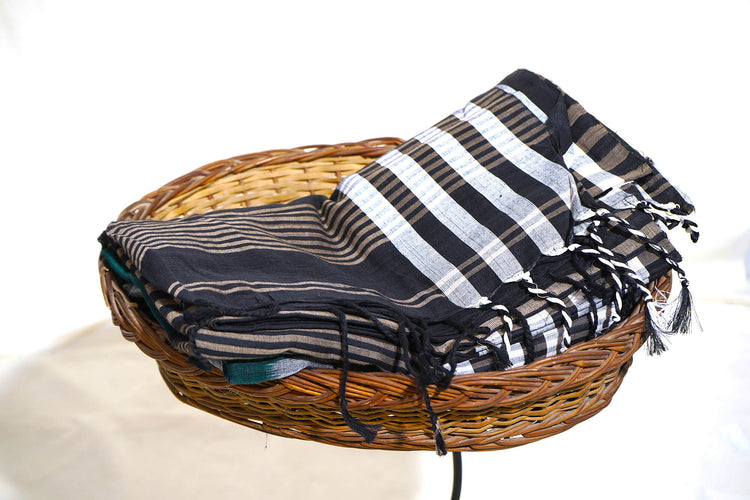 West bengal holds a special place in the heart of handloom lover. The handloom cotton saree from west bengal are particularly famous for their exceptional craftsmanship as well as the fine quality of muslin and cotton. The begampuri cluster, named after the eponymous begampur in the Hoogly district of west bengal, is well known for its bright and colorful combinations, intricate stipes and the serrated extra weft border designs.