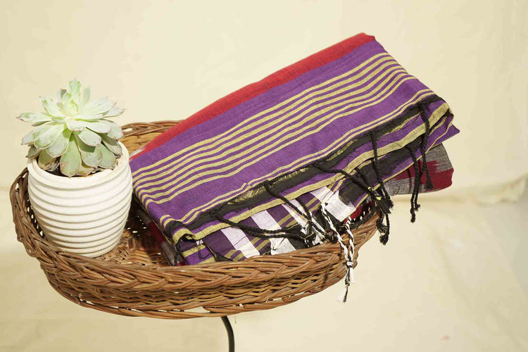 West bengal holds a special place in the heart of handloom lover. The handloom cotton saree from west bengal are particularly famous for their exceptional craftsmanship as well as the fine quality of muslin and cotton. The begampuri cluster, named after the eponymous begampur in the Hoogly district of west bengal, is well known for its bright and colorful combinations, intricate stipes and the serrated extra weft border designs.