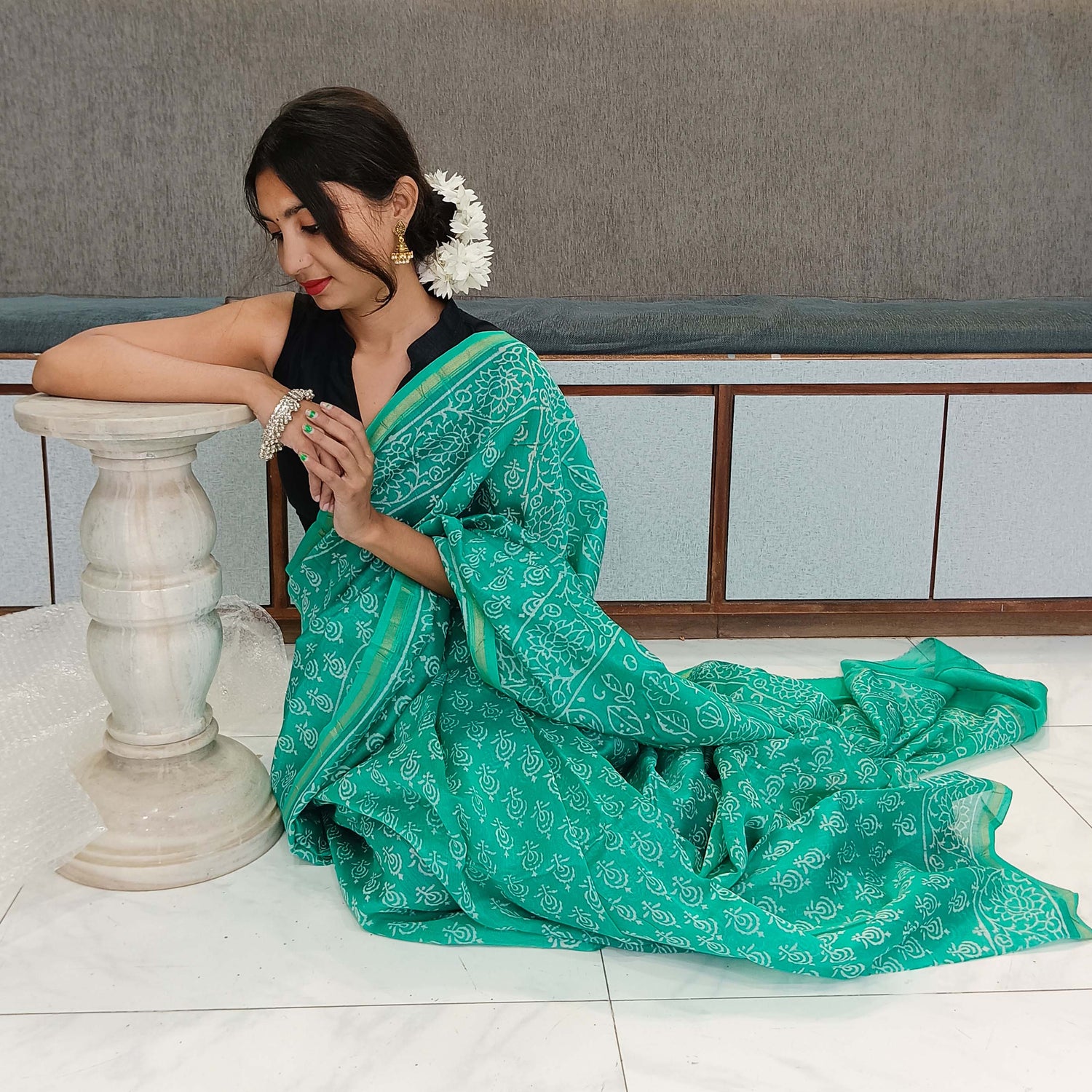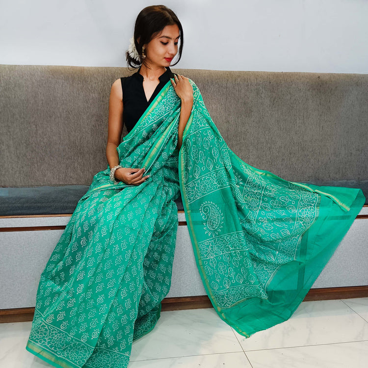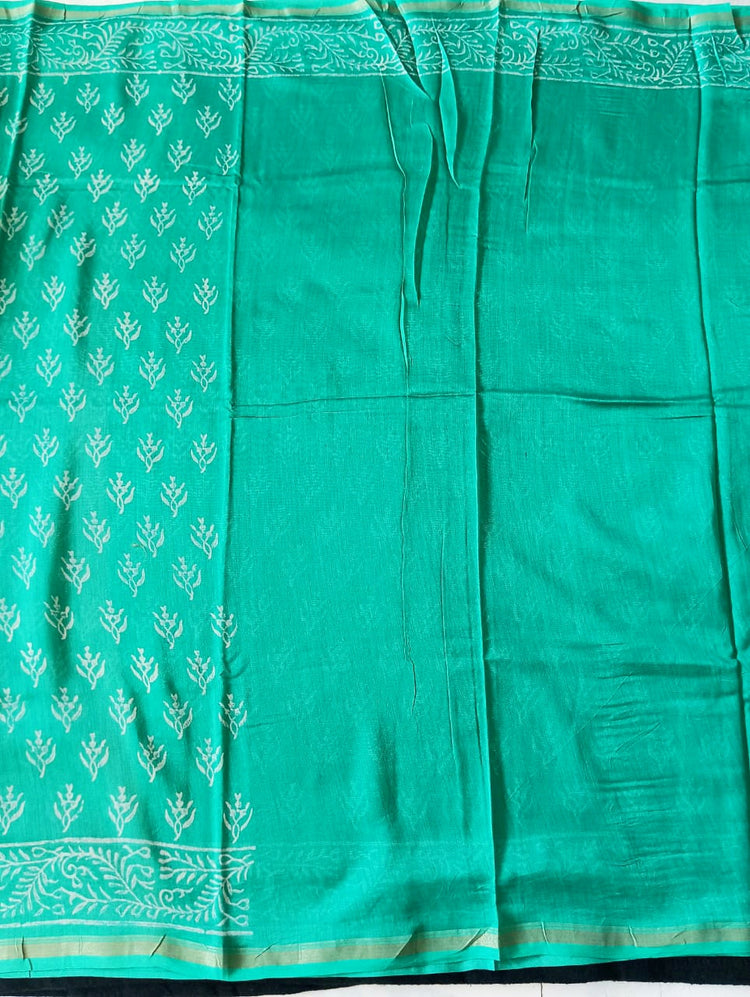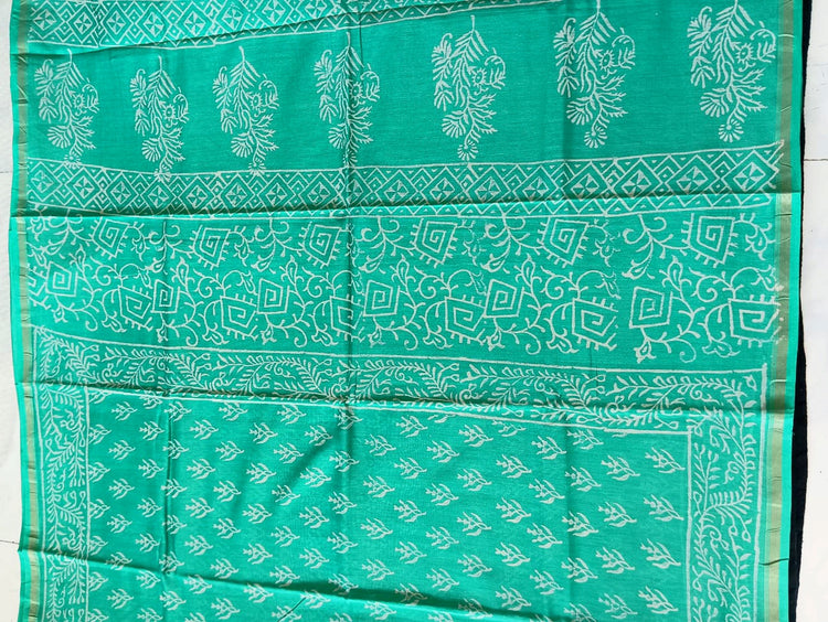 Chanderi Silk Cotton Sari With Dabu Print