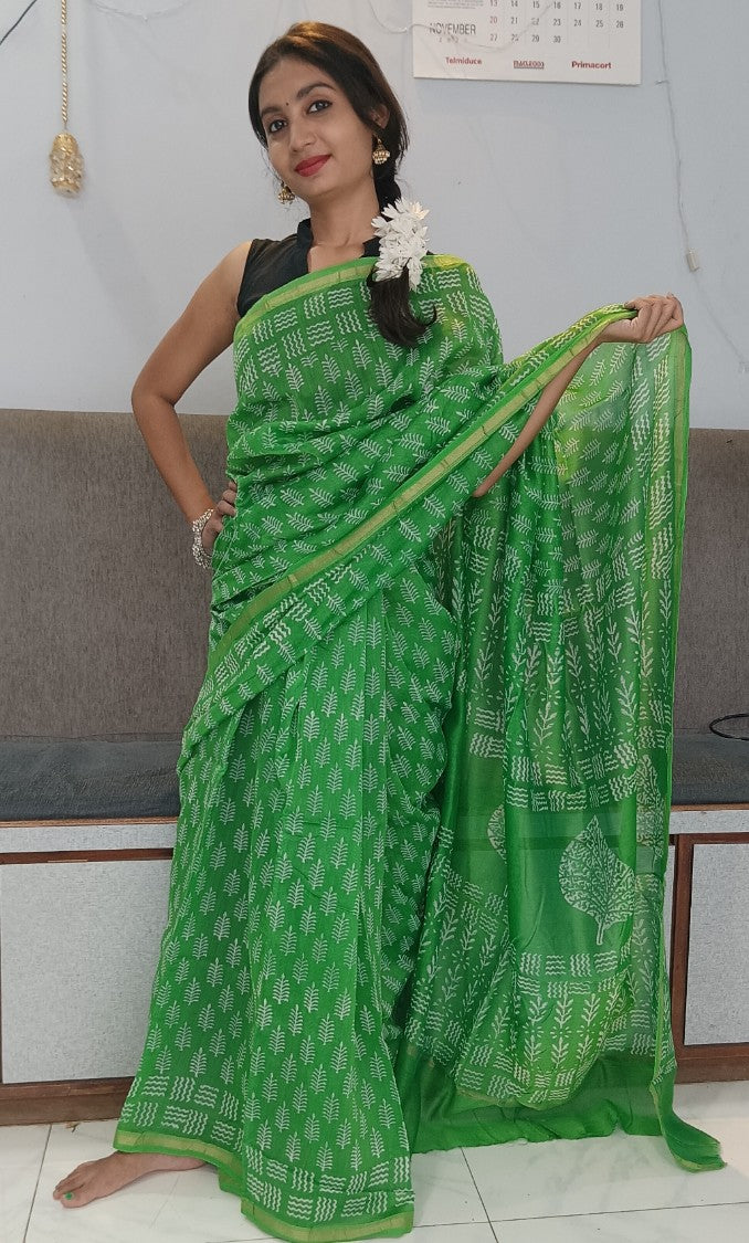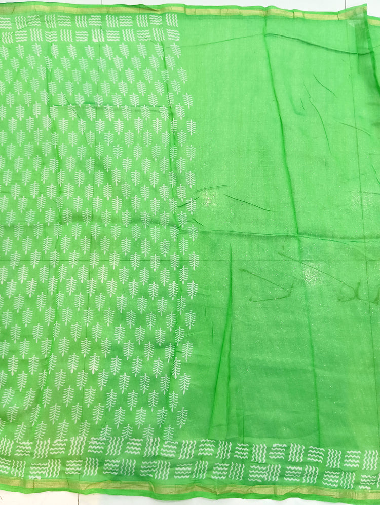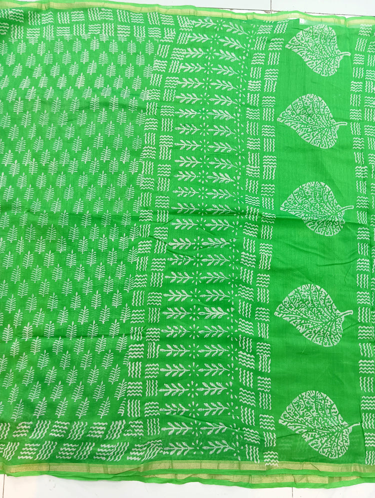 Chanderi Silk Cotton Sari With Dabu print