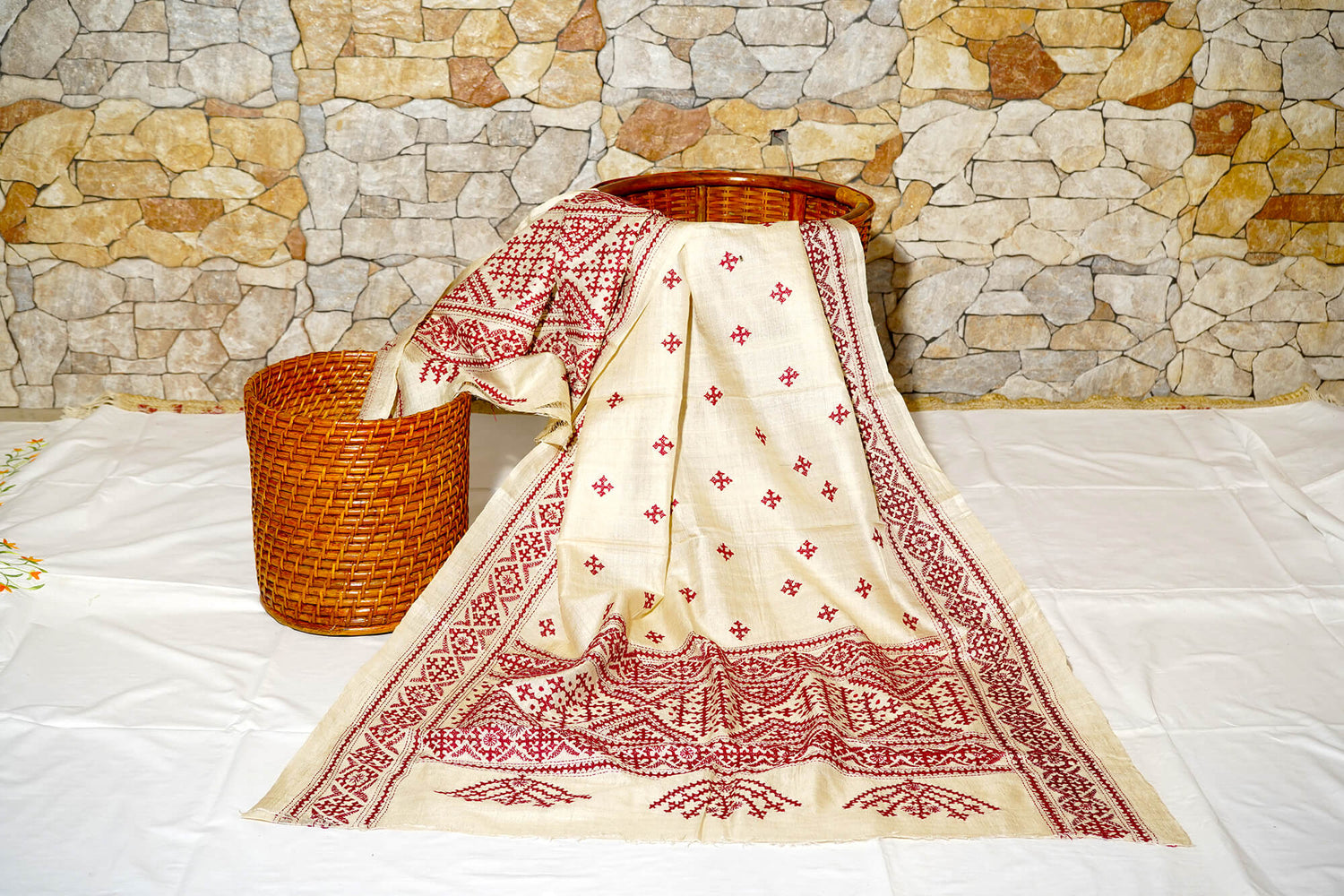 Kutchi work on Silk Dupatta