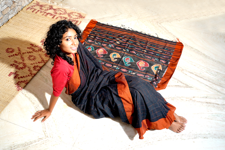 Dhankhali soft Handloom Cotton Sari With Sambhalpuri Pallu