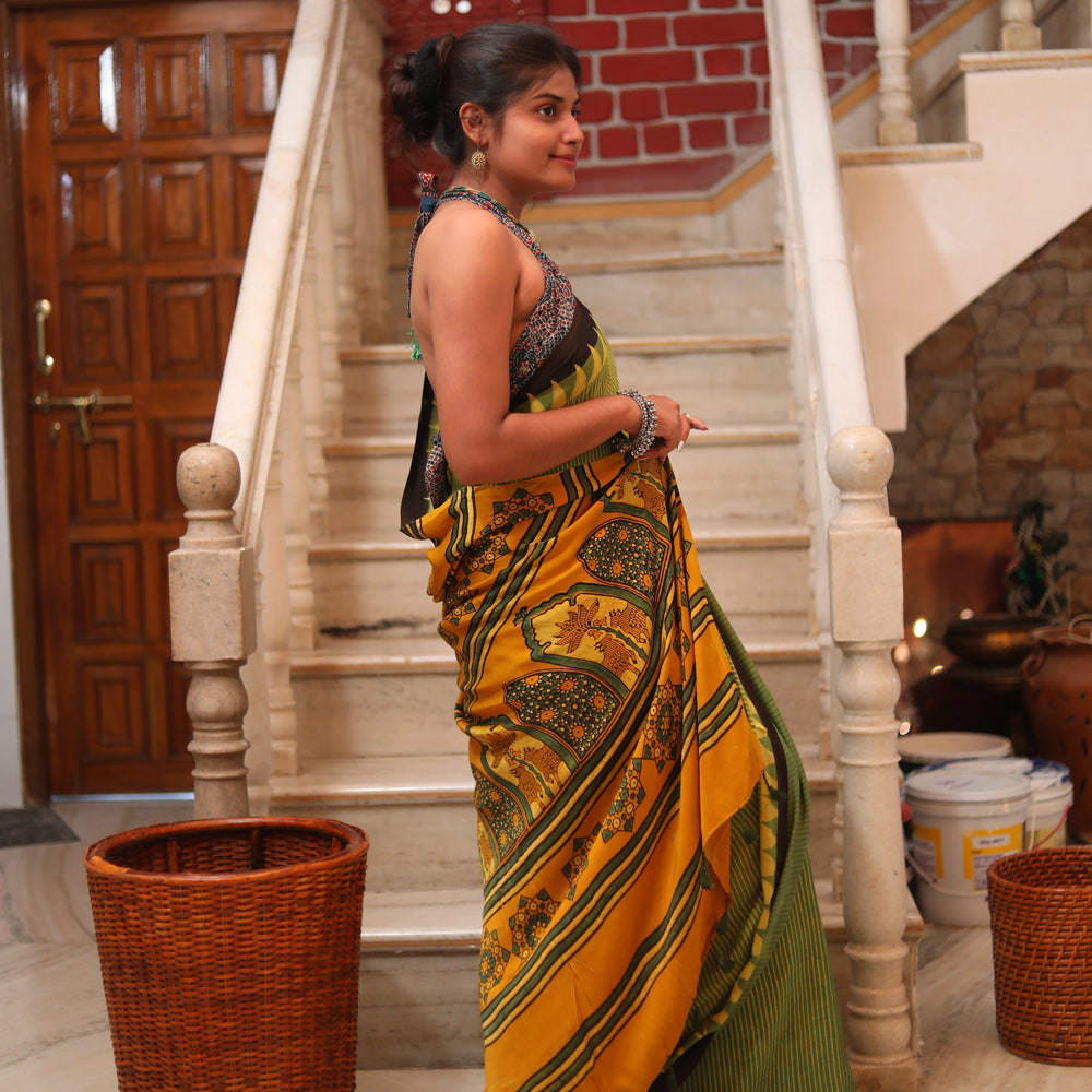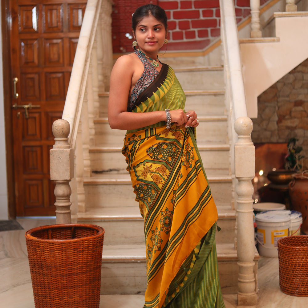 Ajrakh Modal Silk Sari