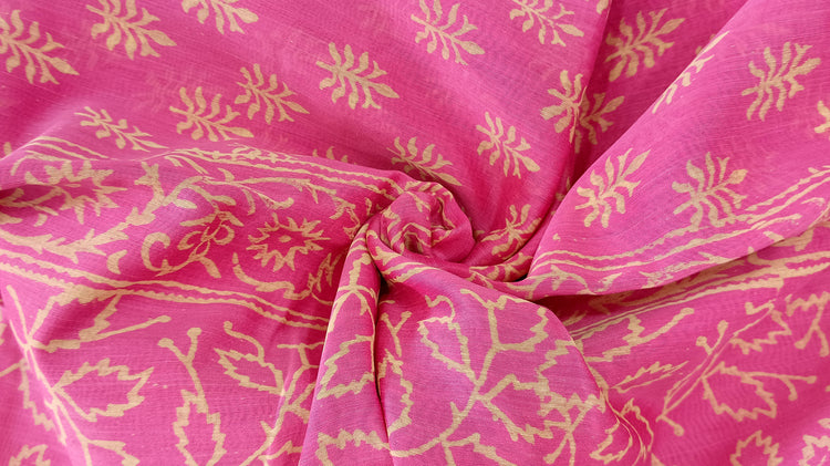 Chanderi Silk Cotton Sari With Dabu Print